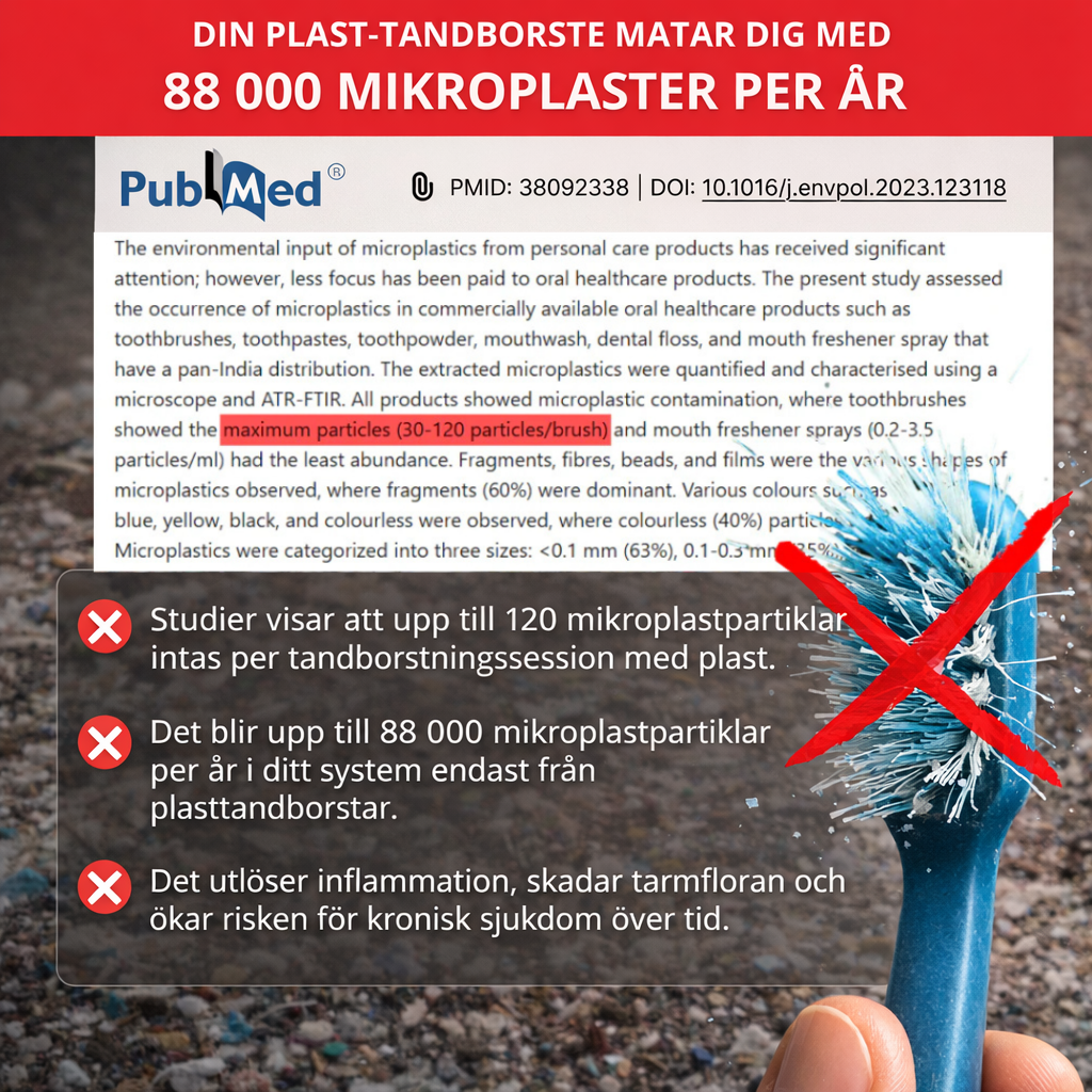 Varje gång du borstar med en vanlig plastborste får du i dig mikroplaster.